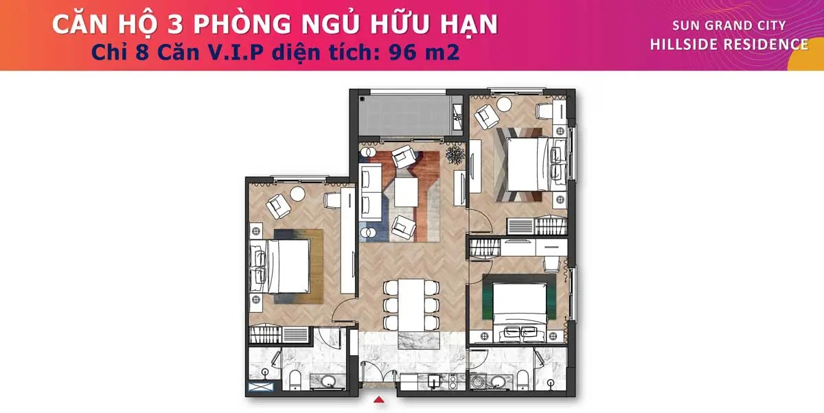 Căn hộ 3 phòng ngủ diện tích 98m2 và chỉ có 8 căn duy nhất